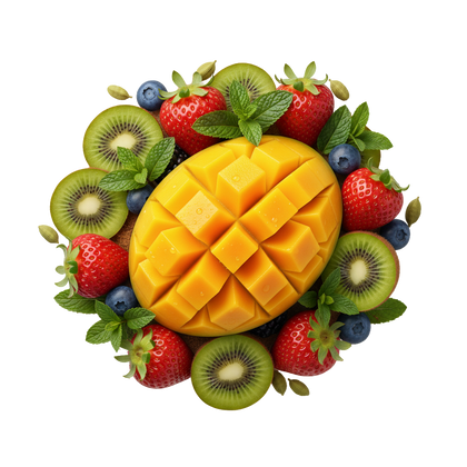 Reife, saftige Mango als Hauptakteur – dick, süß, sonnig, mit klarer Tropen-Assoziation.